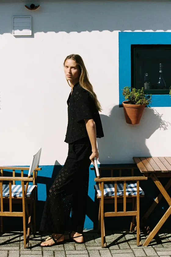 Рубашка с ажурной вышивкой Black | 2920/931/800