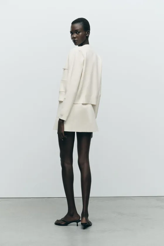 Короткое однотонное трикотажное платье Ecru | 9598/019/712