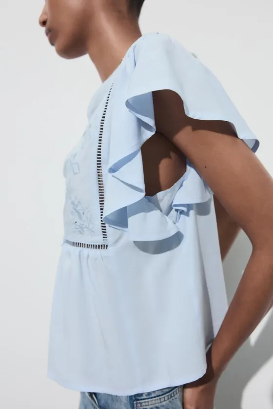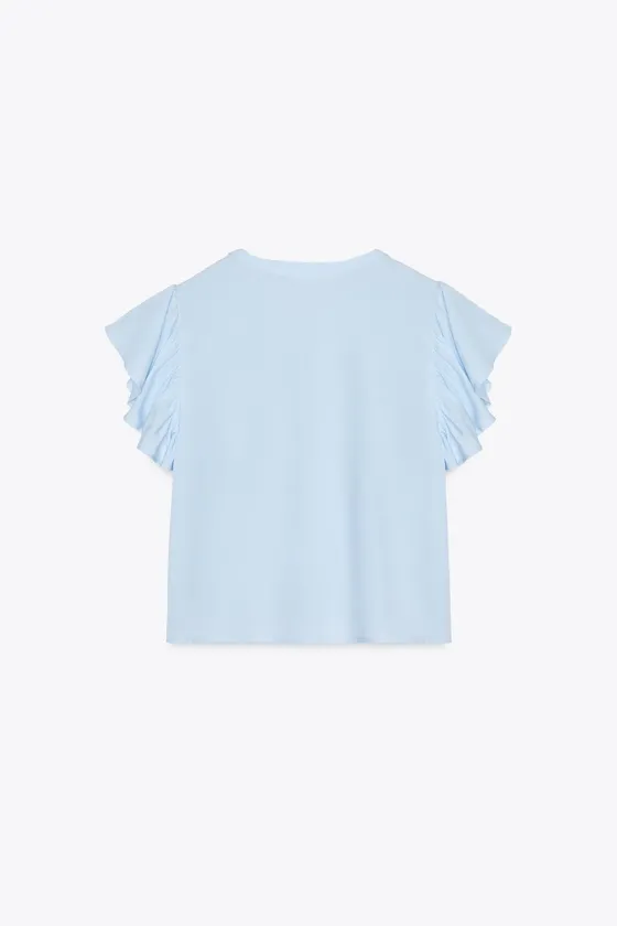 Рубашка с короткими рукавами и воланами Light blue | 8574/023/406