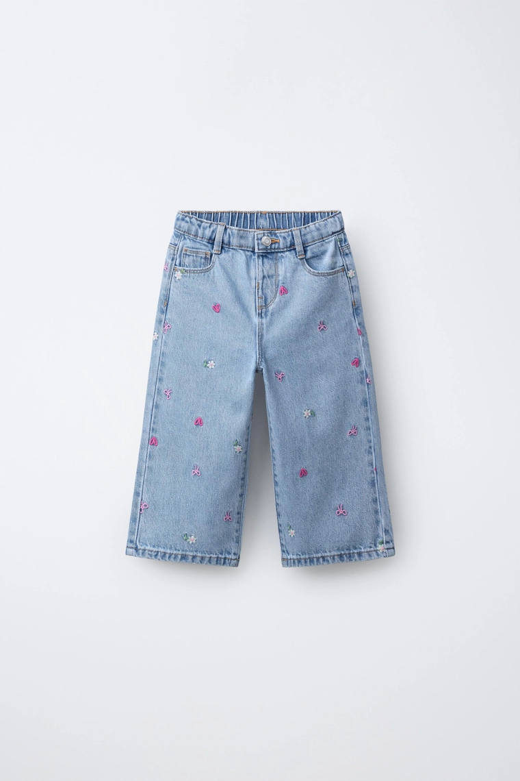 Embroidered culotte jeans