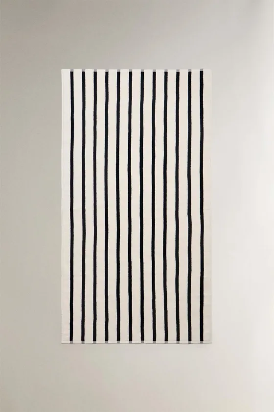 Полосатое хлопковое пляжное полотенце Ecru / Navy | 5581/013/066