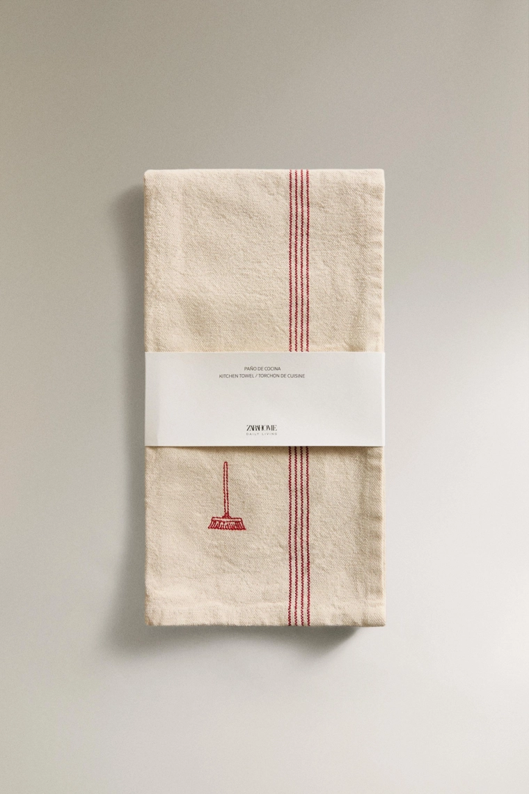 Striped cotton tea towel Red | 7251/026/600