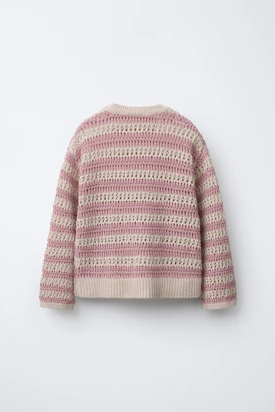 Свитер в полоску с ажурным узором Dusty pink | 2209/602/676