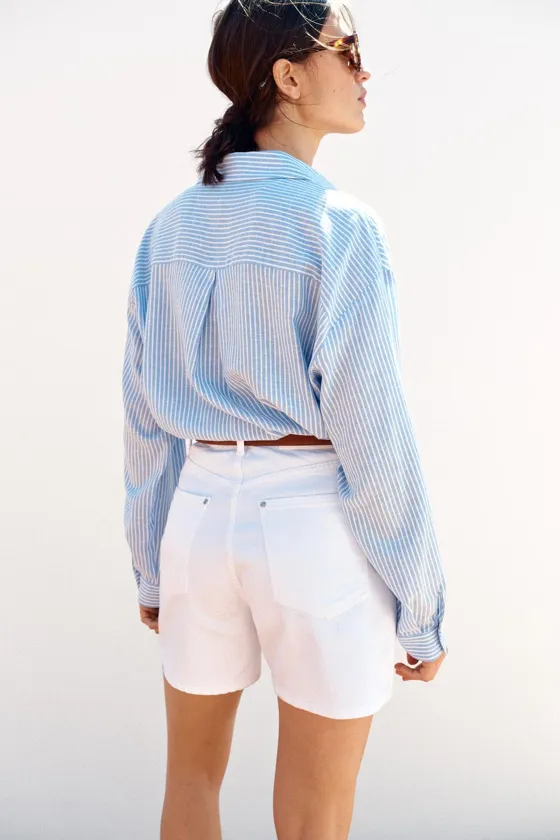 Рубашка из смесового льна в полоску Blue/White | 2886/909/044