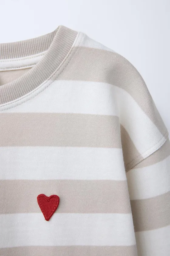 Лонгслив в полоску с нашивкой «сердце» Beige | 2335/604/450