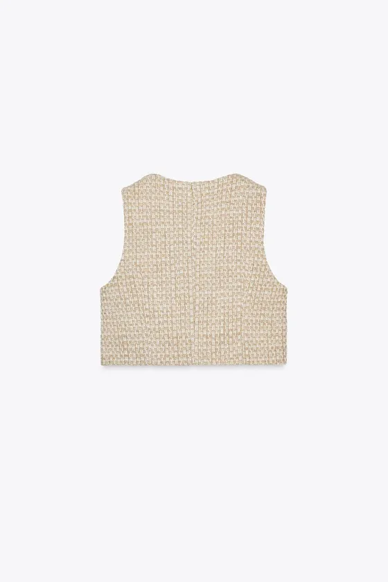 Укороченный жилет из рельефной ткани Ecru / Beige | 2200/130/075