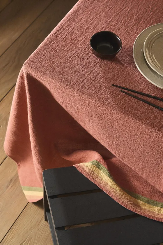 Толстоватое полотенце из льна с цветной полоской Terracotta | 5209/021/658