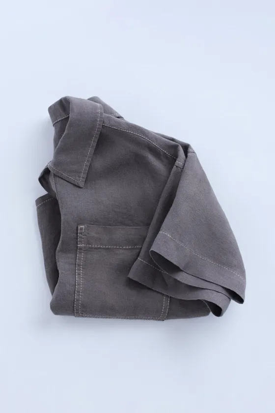 Льняная рубашка с карманом — TIMELESZ Anthracite grey | 1432/566/807