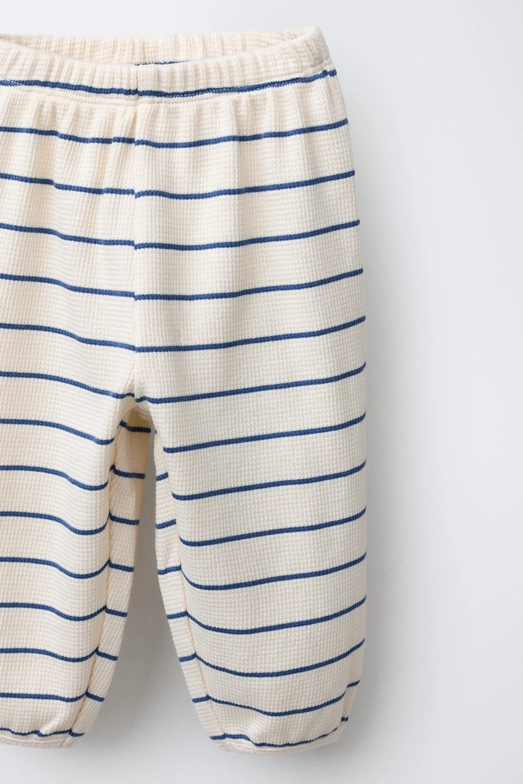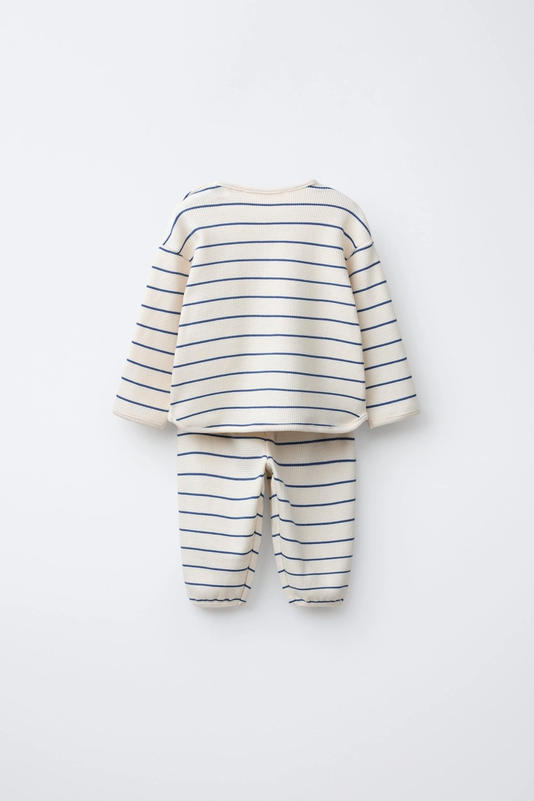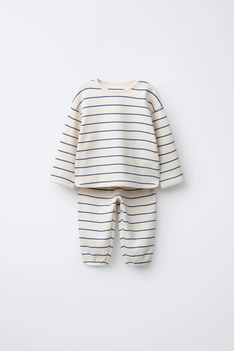Wayas waffle-knit t-shirt and jogger set Ecru / Blue | 4174/572/080