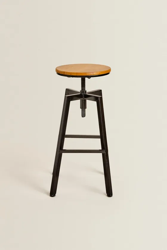 Барный стул с деревянным сиденьем и металлической основой
