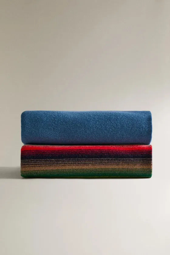 Плед из шерсти с полосатой отделкой разных цветов Blue marl | 2342/004/418