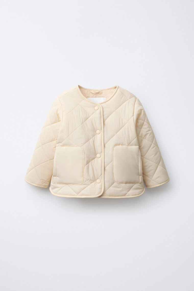 Water-repellent faux shearling nylon jacket Ecru | 5644/532/712